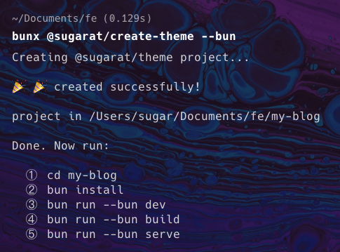 bun create @sugarat/theme